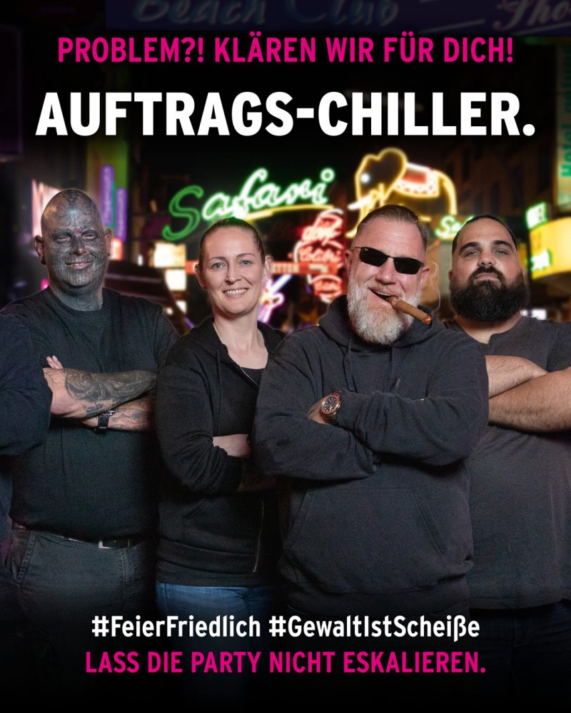 Die Kampagne soll mehrere Millionen Menschen erreichen. Für die Gestaltung tauschte sich Zahrt auch mit Türsteherinnen und Türstehern in ganz Deutschland aus. Die Visuals greifen typische Szenen des Nachtlebens auf, versehen mit zugespitzten Slogans wie: