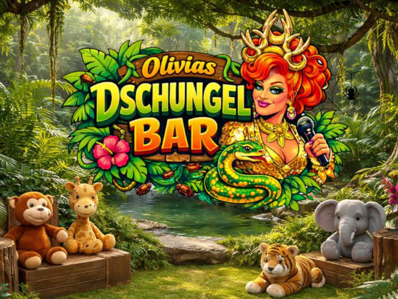 Der Name „Olivias Dschungel-Bar“ ist Programm: Die Räume werden im Stil des australischen Dschungels gestaltet. Wer möchte, kann hier zu DJ-Musik wild tanzen, gemütlich auf Pritschen Getränke schlürfen, krasse Prüfungen absolvieren und es gibt auch eine Art Dschungelthron für Erinnerungsselfies.
